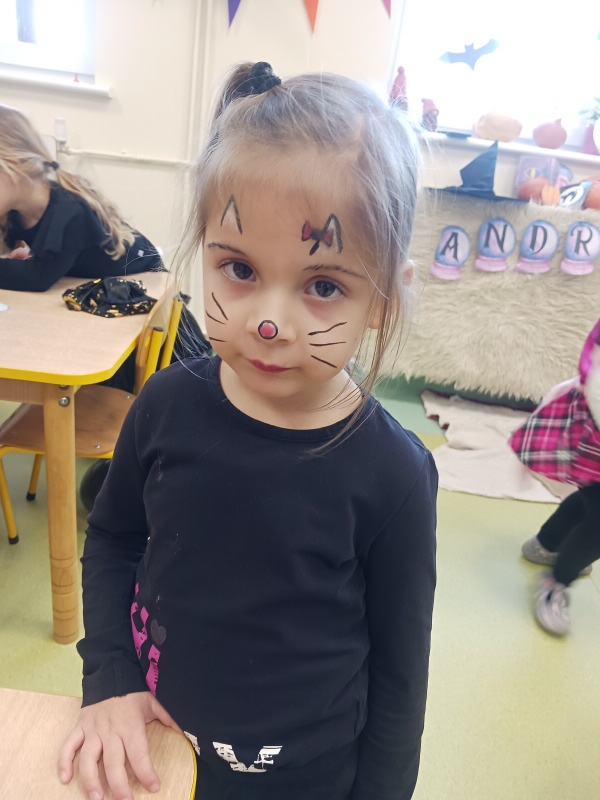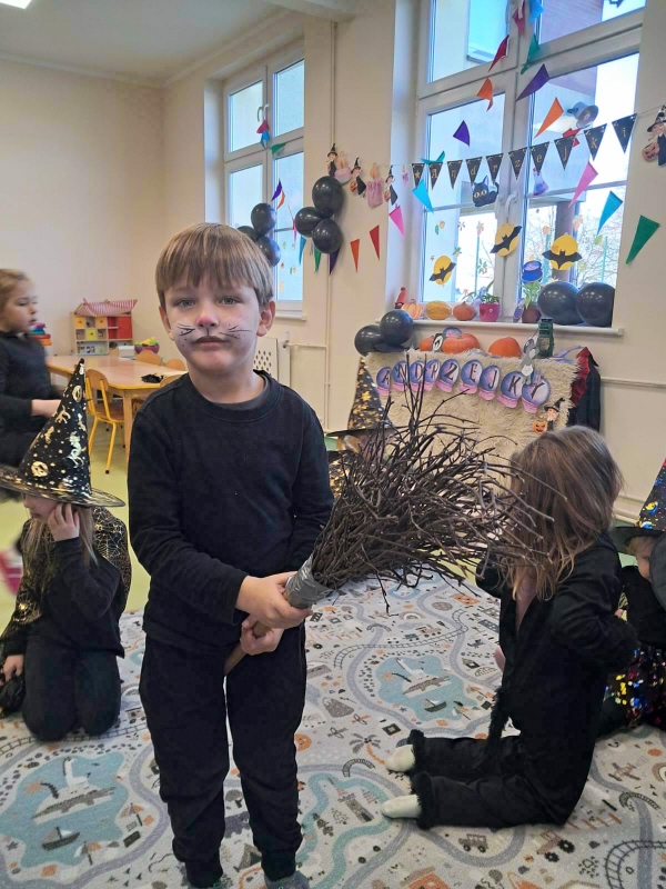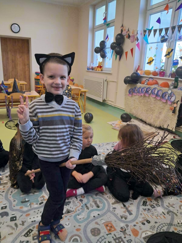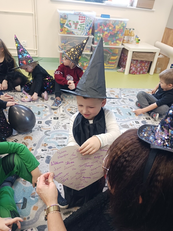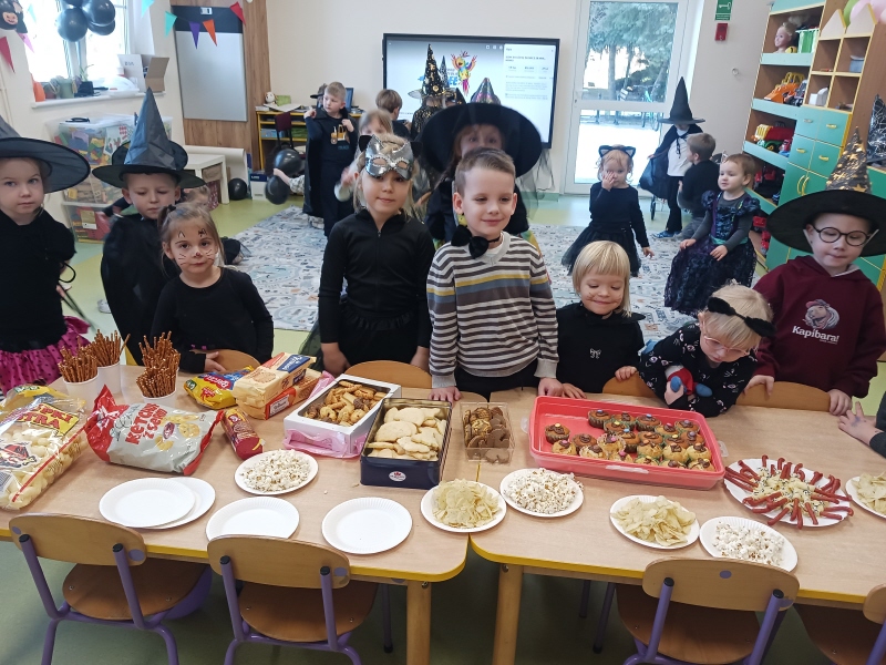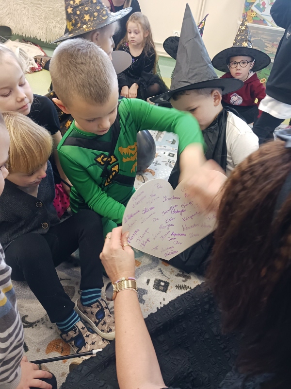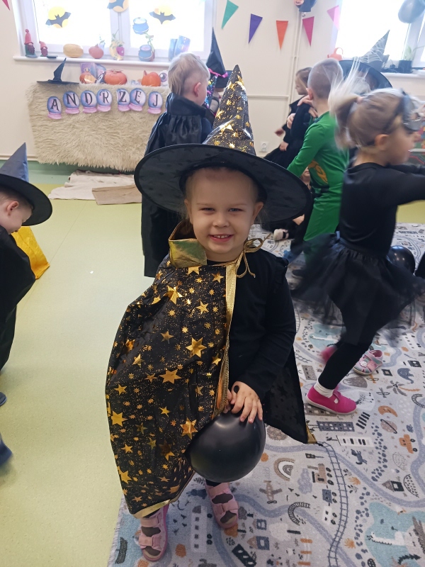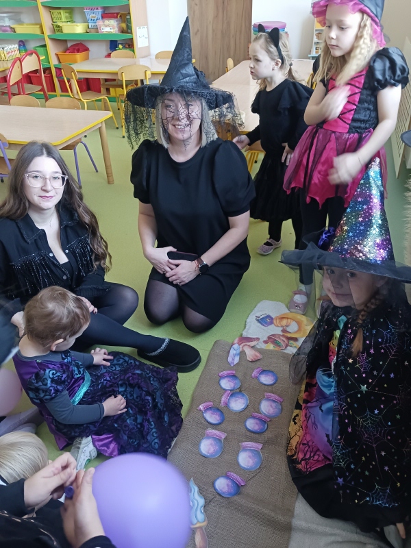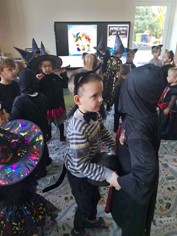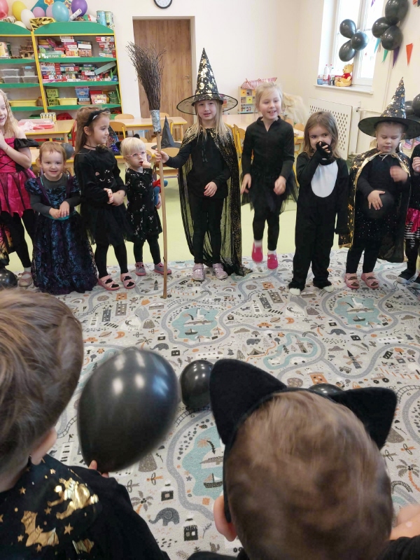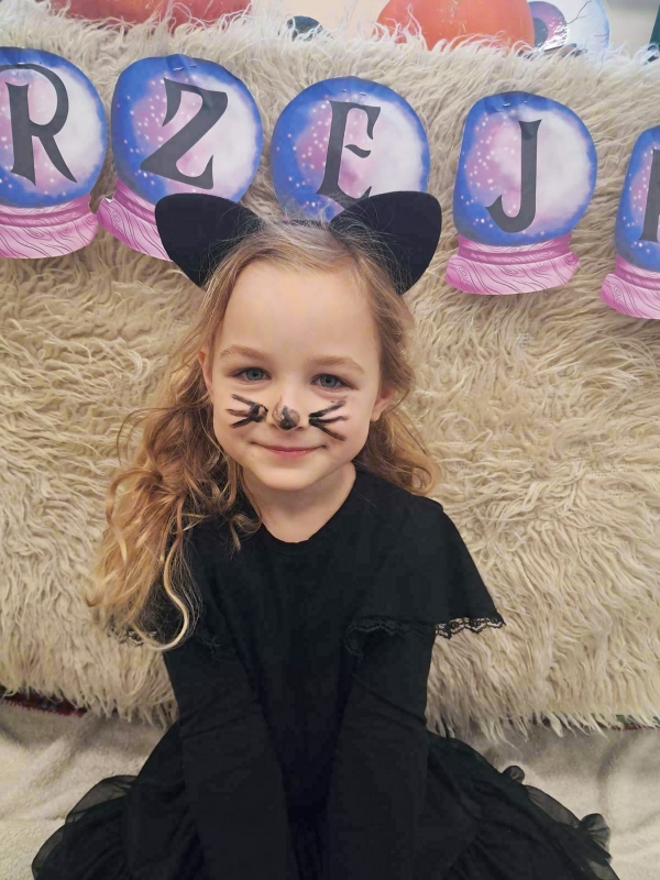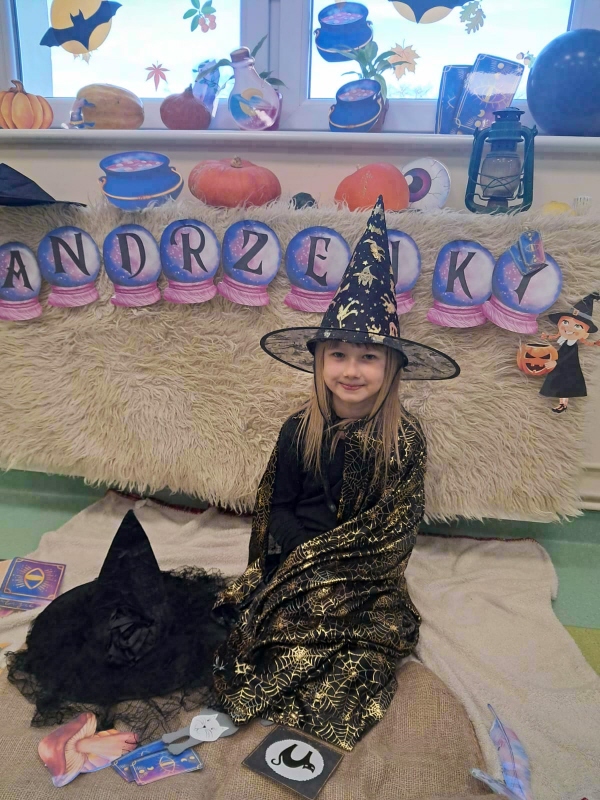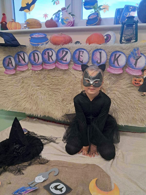 Przedszkolaki brały udział również w tematycznych aktywnościach związanych z wróżkami, czarnymi kotami i innymi andrzejkowymi symbolami, które dodały wydarzeniu niepowtarzalnego klimatu. Cała uroczystość przebiegła w atmosferze beztroskiej zabawy i wspólnej integracji, a jej zwieńczeniem był słodki poczęstunek.