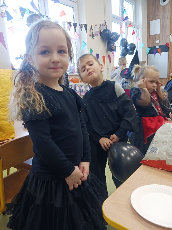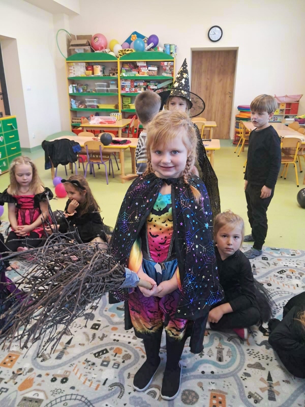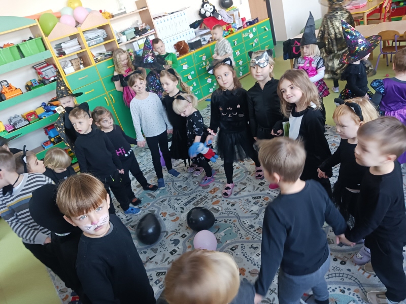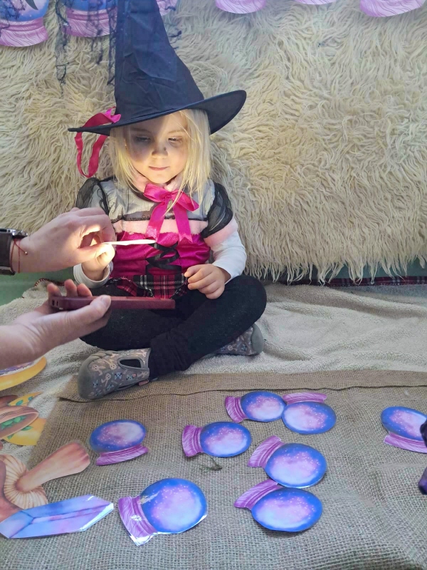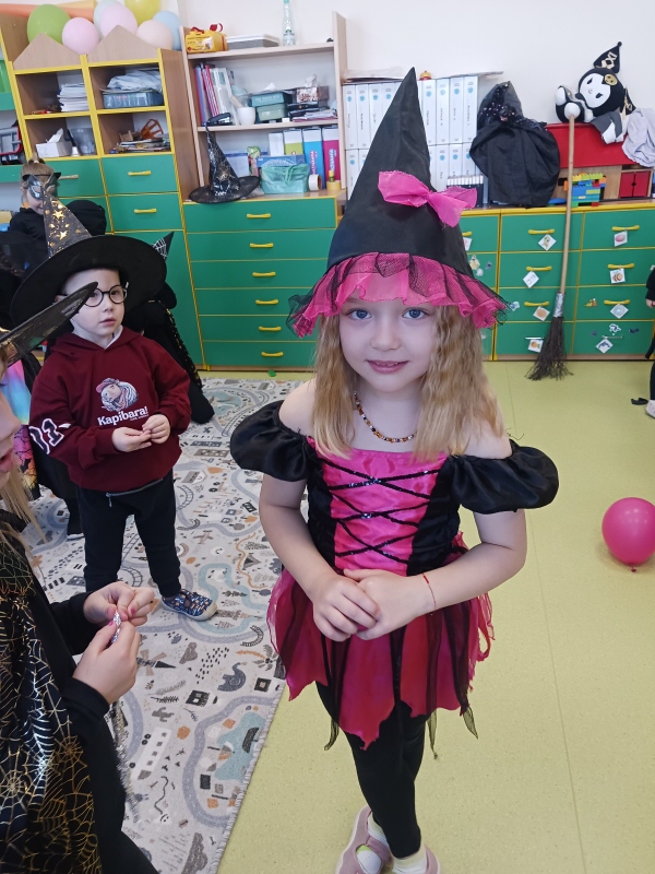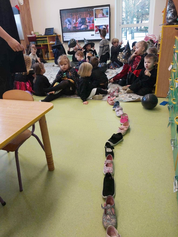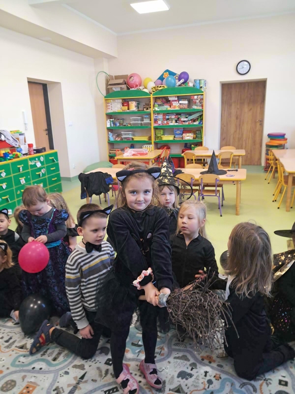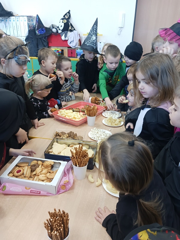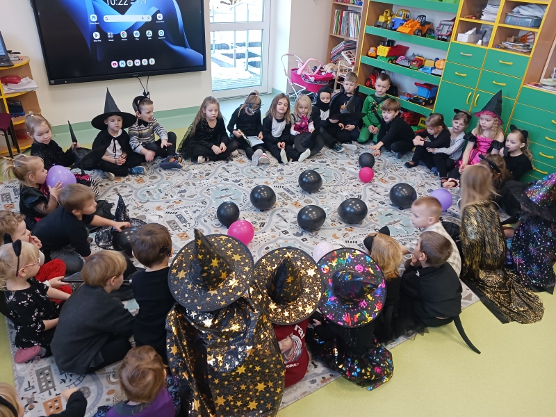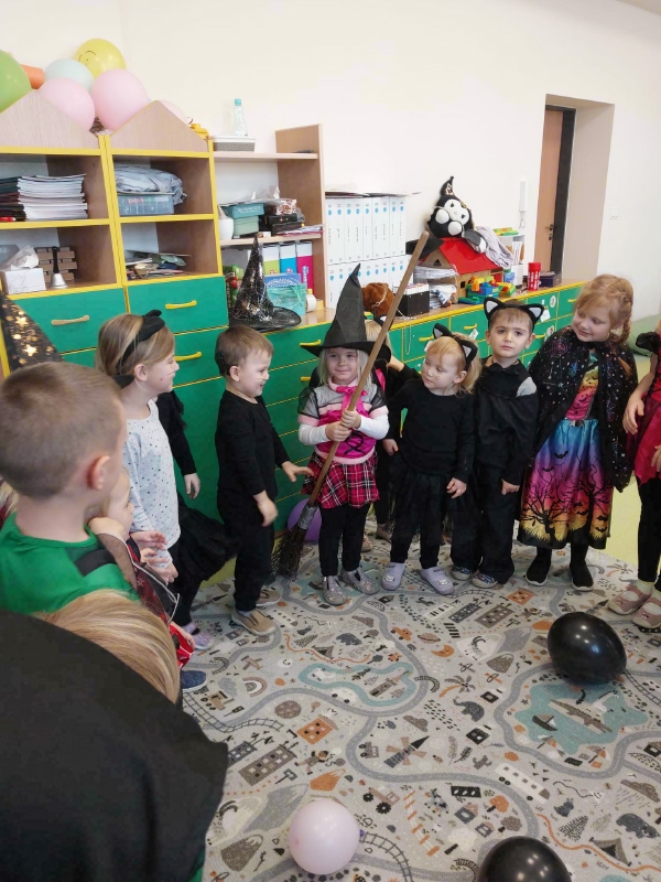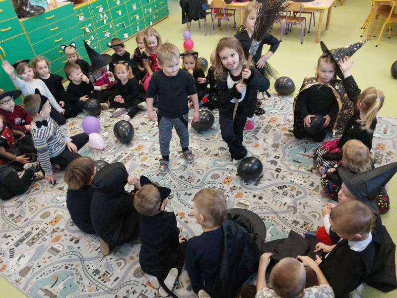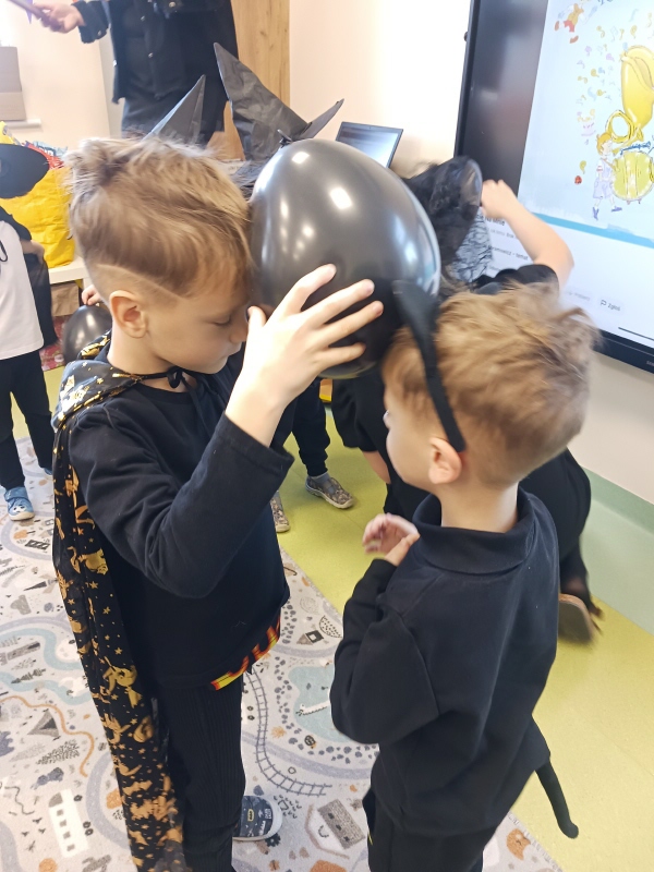 Przedszkolaki brały udział również w tematycznych aktywnościach związanych z wróżkami, czarnymi kotami i innymi andrzejkowymi symbolami, które dodały wydarzeniu niepowtarzalnego klimatu. Cała uroczystość przebiegła w atmosferze beztroskiej zabawy i wspólnej integracji, a jej zwieńczeniem był słodki poczęstunek.