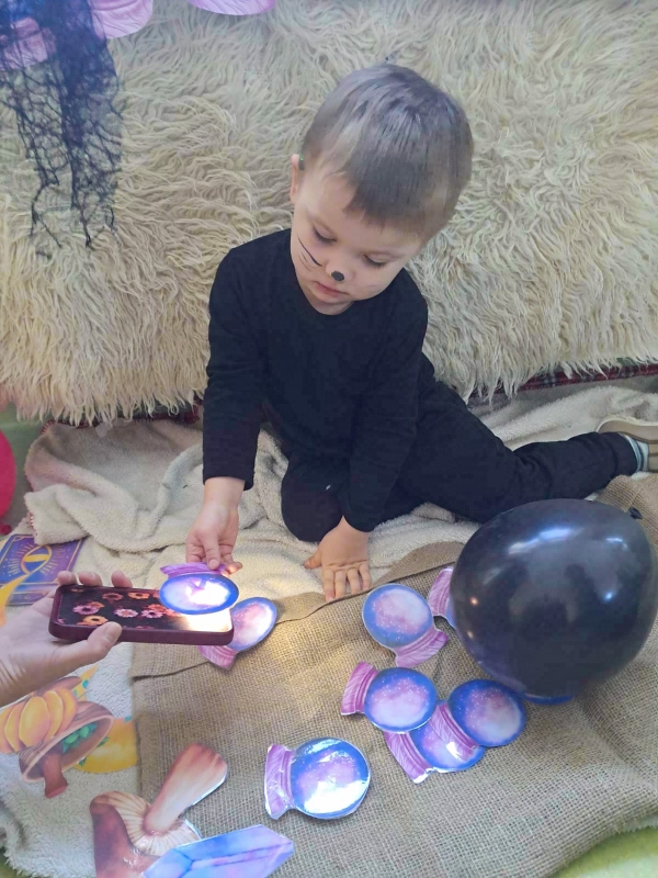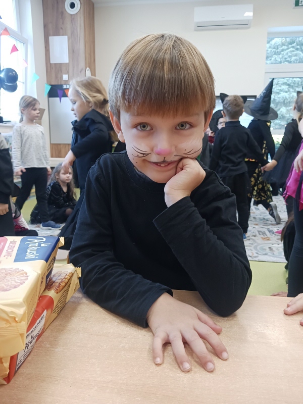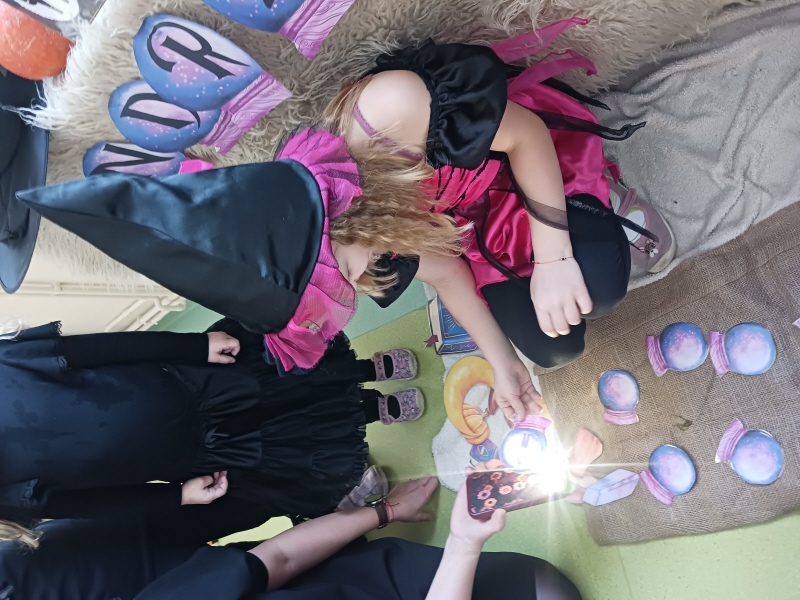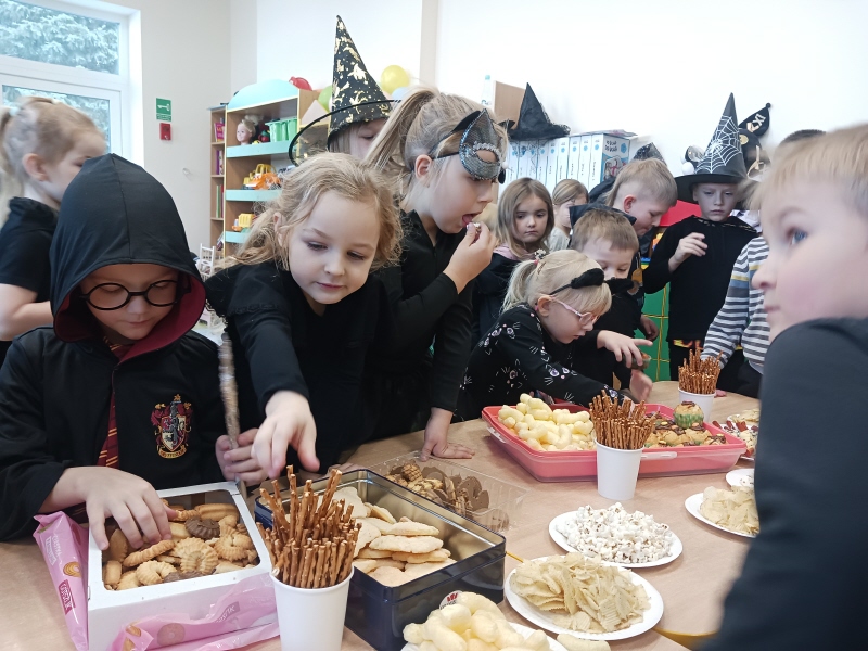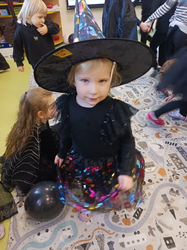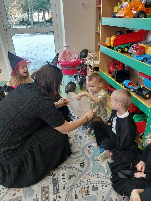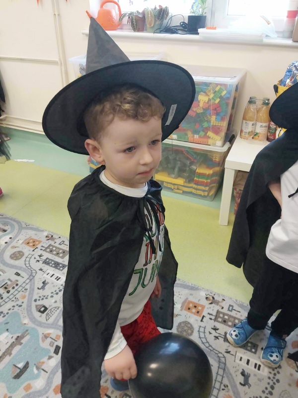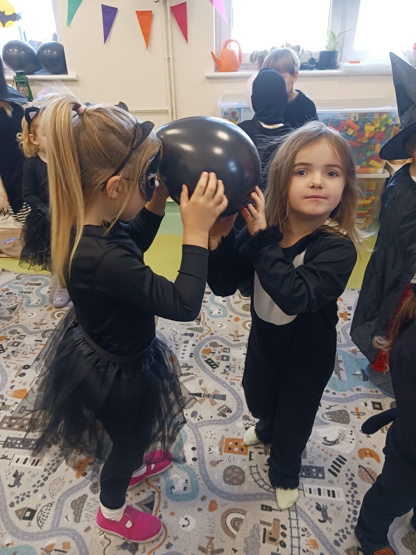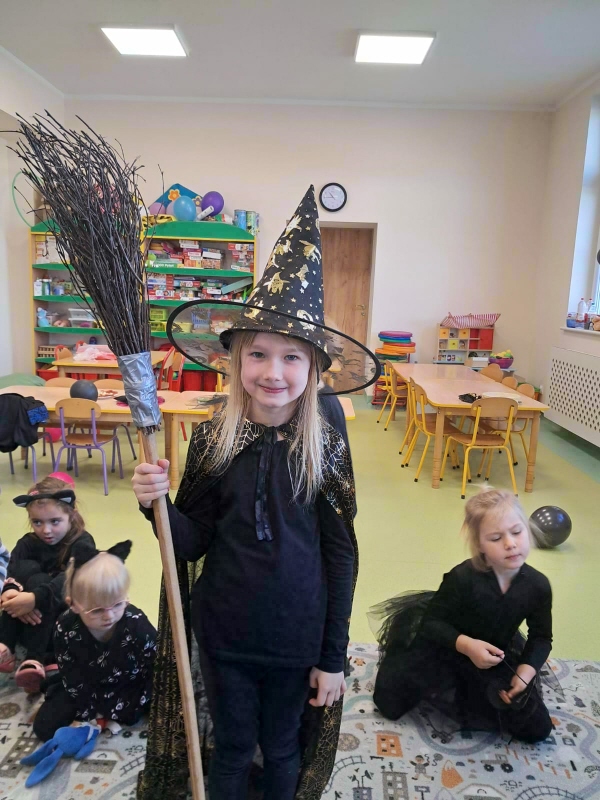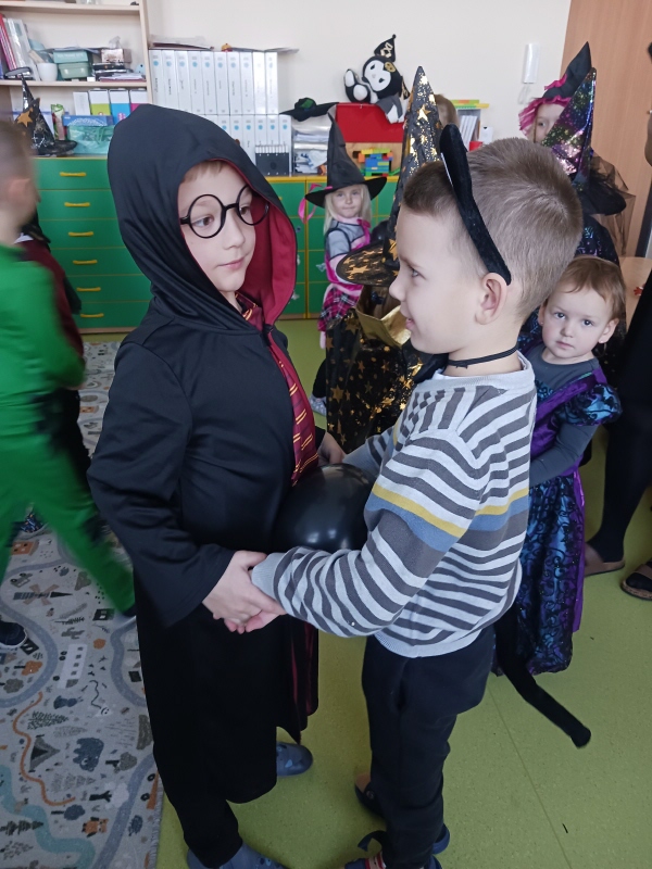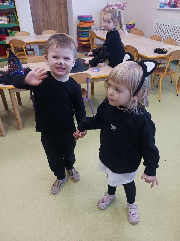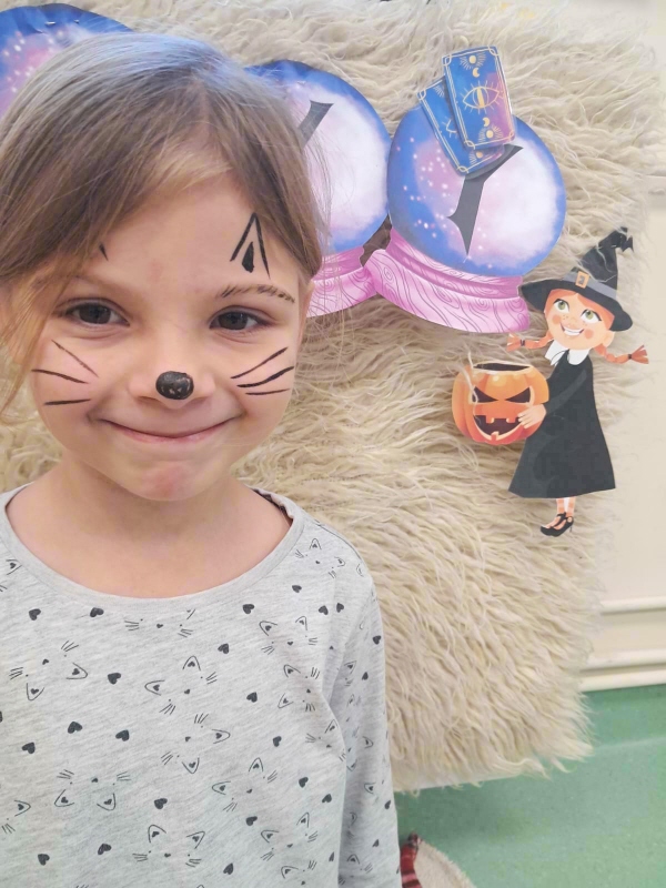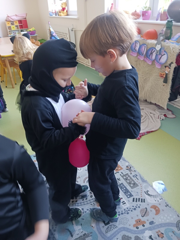 Przedszkolaki brały udział również w tematycznych aktywnościach związanych z wróżkami, czarnymi kotami i innymi andrzejkowymi symbolami, które dodały wydarzeniu niepowtarzalnego klimatu. Cała uroczystość przebiegła w atmosferze beztroskiej zabawy i wspólnej integracji, a jej zwieńczeniem był słodki poczęstunek.