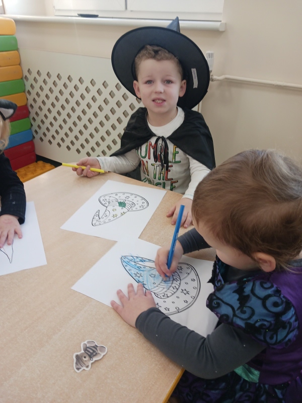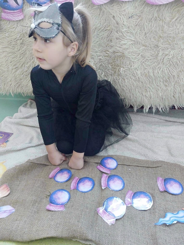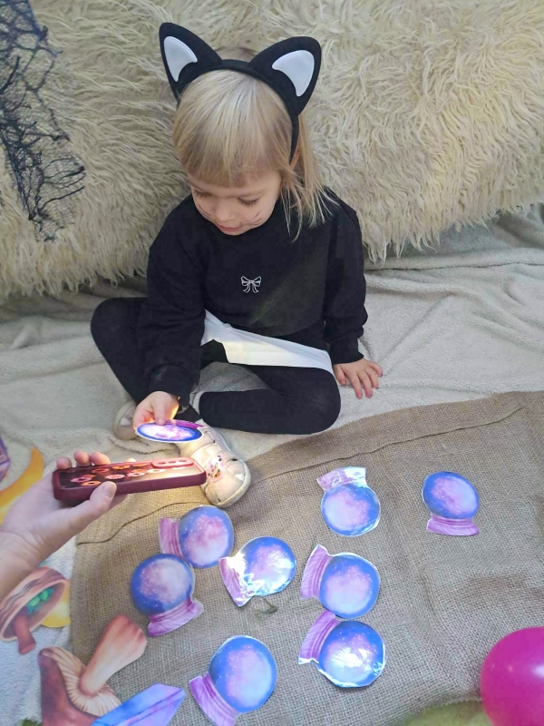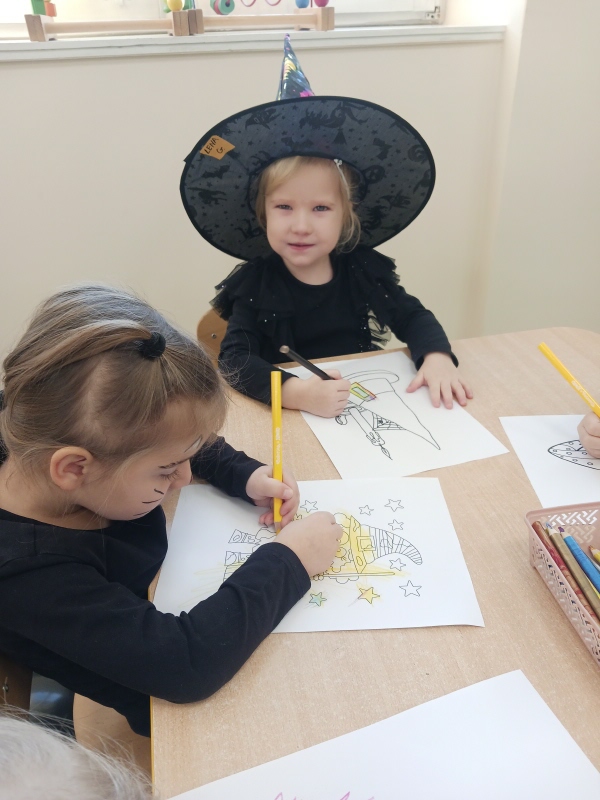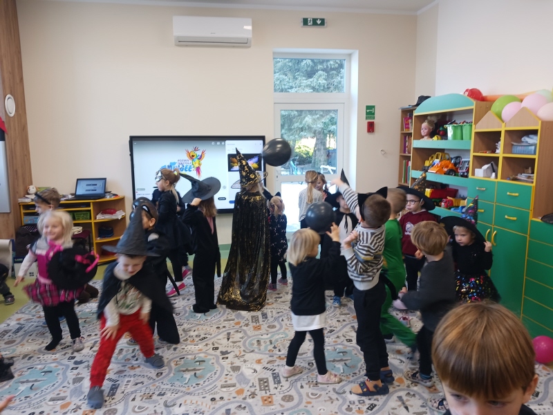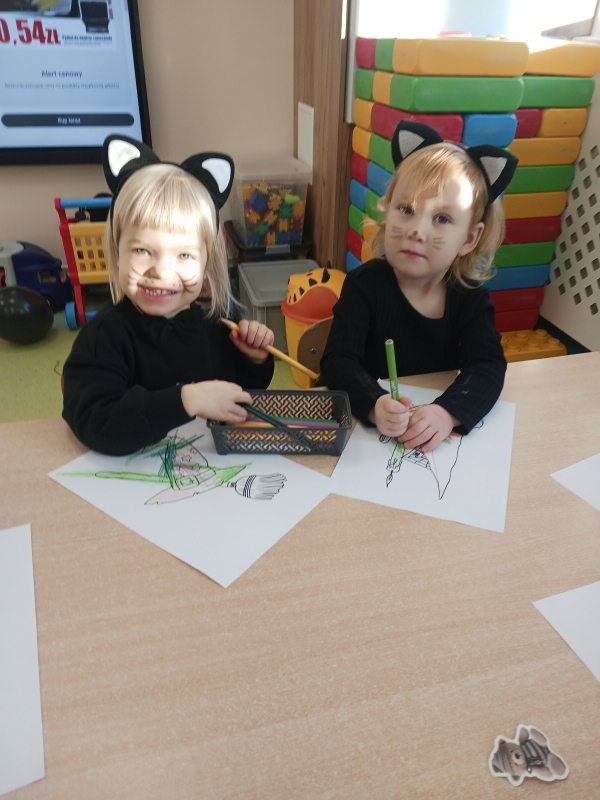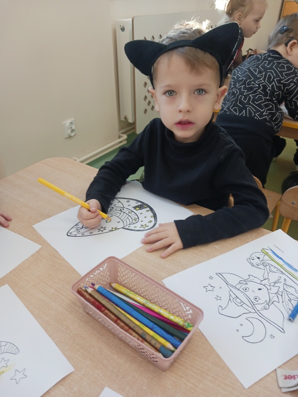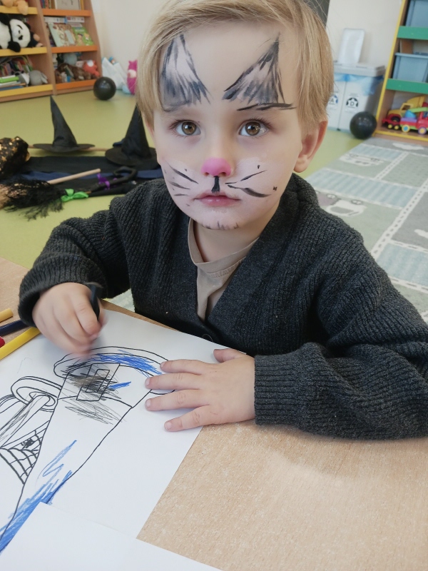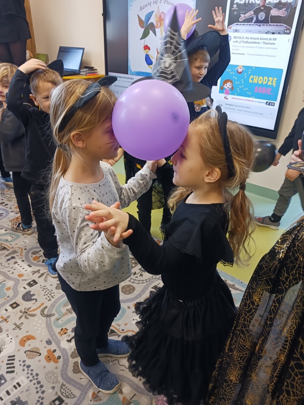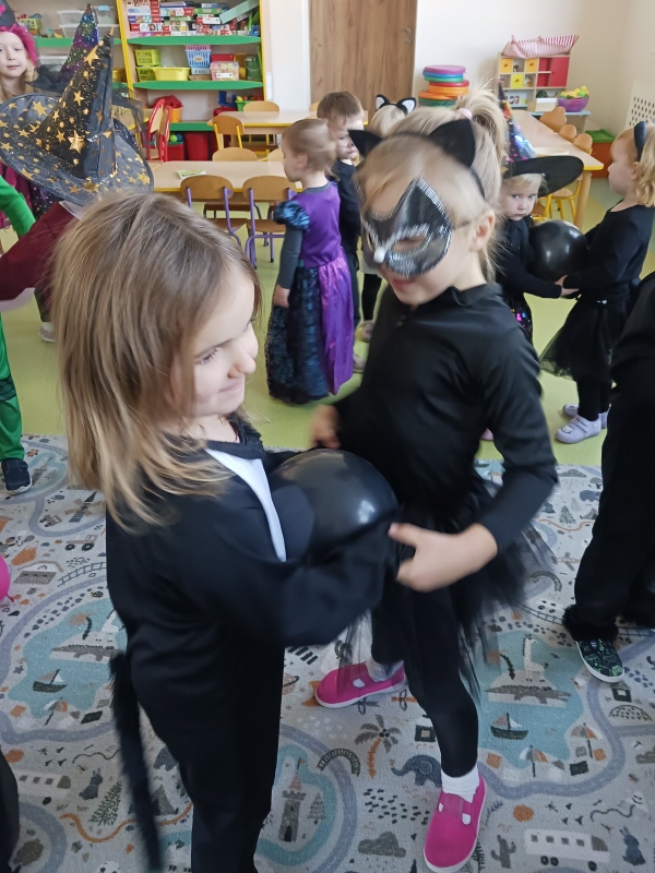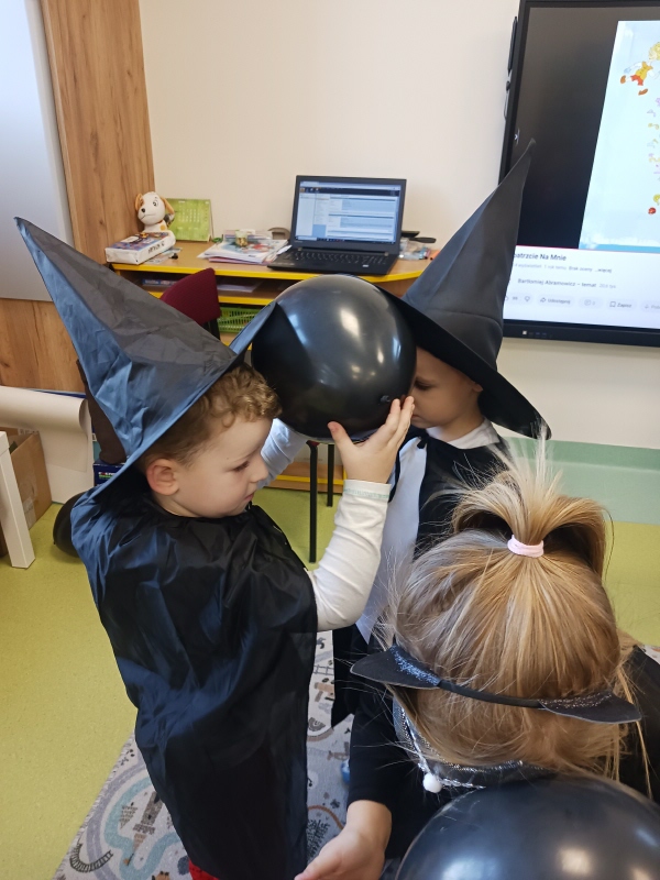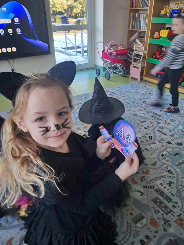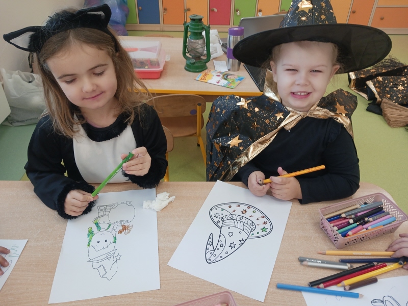 Przedszkolaki brały udział również w tematycznych aktywnościach związanych z wróżkami, czarnymi kotami i innymi andrzejkowymi symbolami, które dodały wydarzeniu niepowtarzalnego klimatu. Cała uroczystość przebiegła w atmosferze beztroskiej zabawy i wspólnej integracji, a jej zwieńczeniem był słodki poczęstunek.
