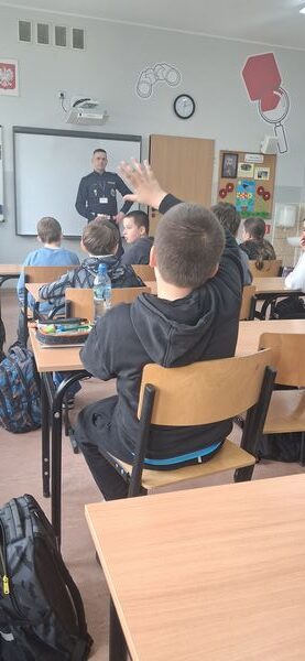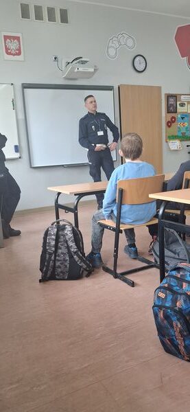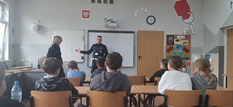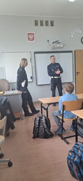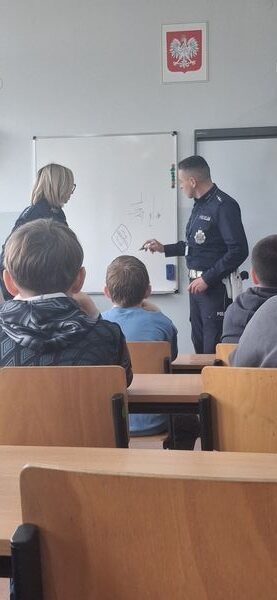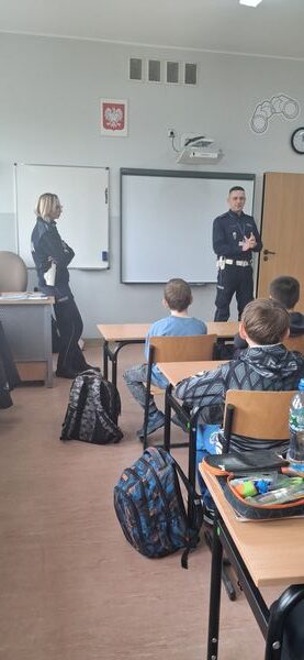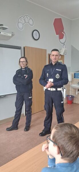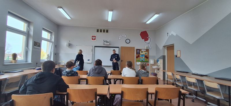 Uczniowie klas czwartych mieli okazję spotkać się z funkcjonariuszami Wydziału Ruchu Drogowego z Komendy Powiatowej Policji w Gostyniu. Podczas zajęć policjanci przypomnieli najważniejsze zasady bezpieczeństwa na drodze oraz omówili nowe przepisy obowiązujące od marca dotyczące korzystania z hulajnóg elektrycznych.
