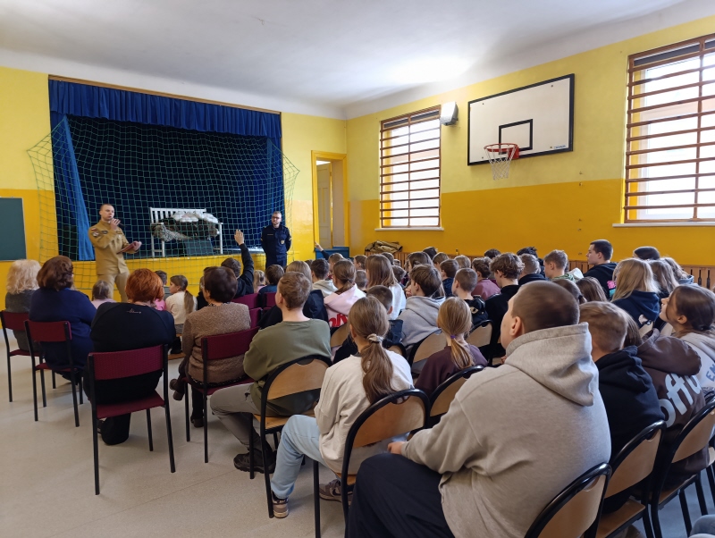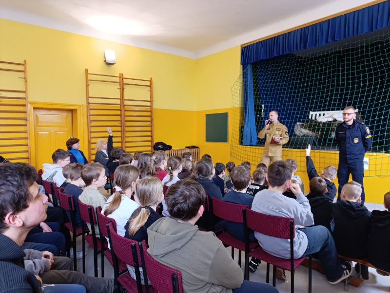 9 lutego uczniowie naszej szkoły uczestniczyli w spotkaniu dotyczącym bezpieczeństwa w czasie ferii. Prelekcja prowadzona była przez przedstawicieli Straży Miejskiej i Państwowej Straży Pożarnej. Podczas spotkania uczniowie dowiedzieli się jakie są zasady bezpieczeństwa podczas zimowego wypoczynku. Prowadzący zapoznali uczniów z podstawowymi zasadami dotyczącymi udzielania pierwszej pomocy.