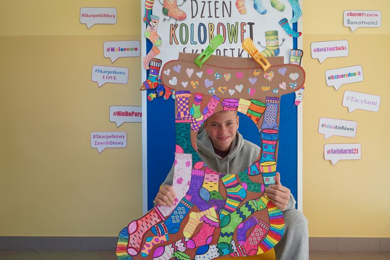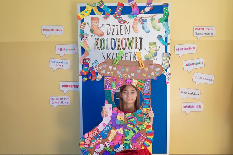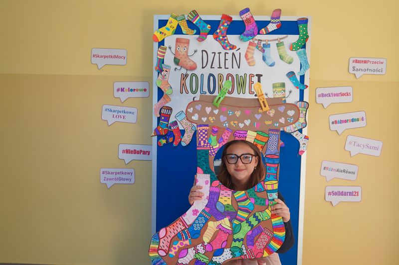 Tego dnia uczniowie oraz nauczyciele założyli kolorowe, nie do pary skarpetki – symbol solidarności z osobami z zespołem Downa.