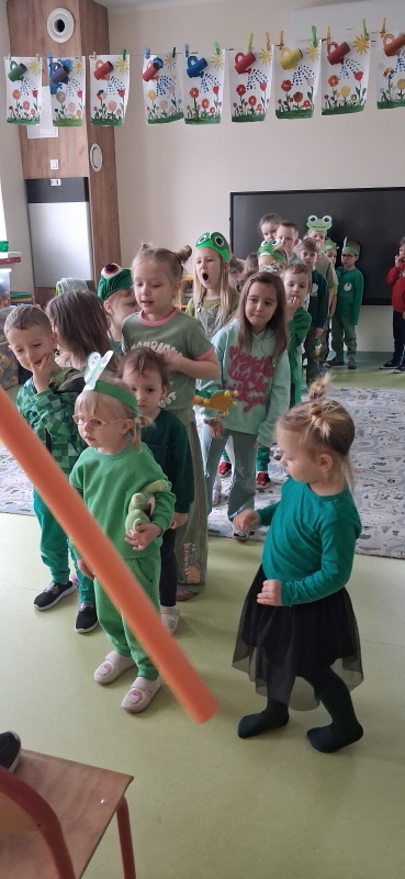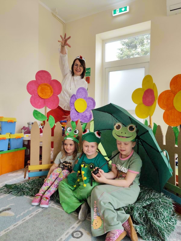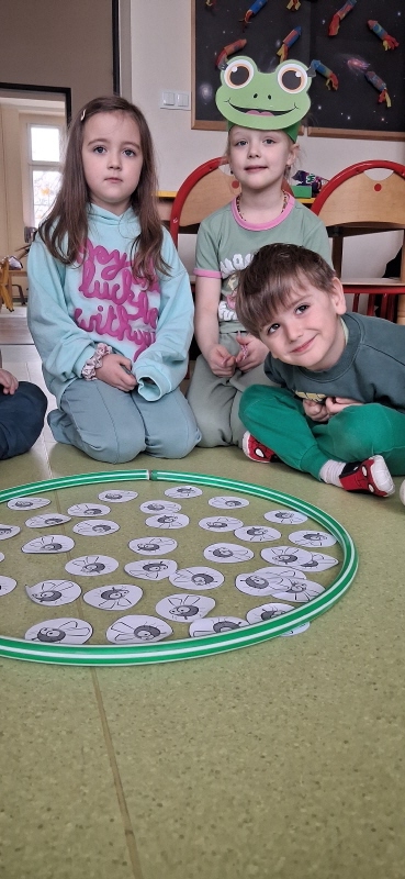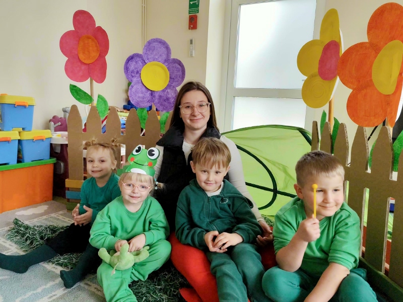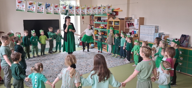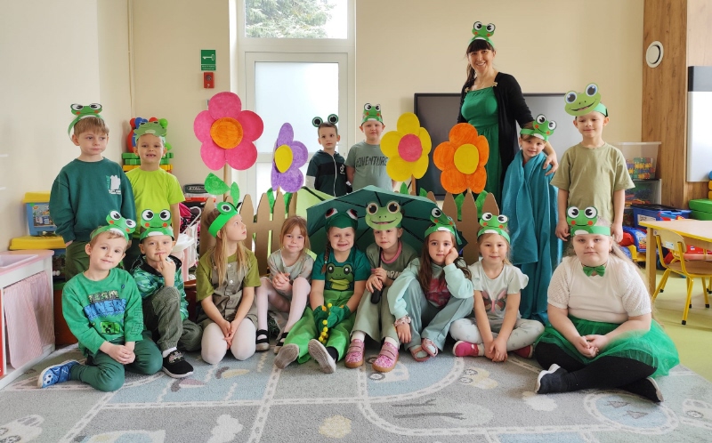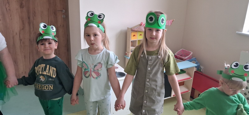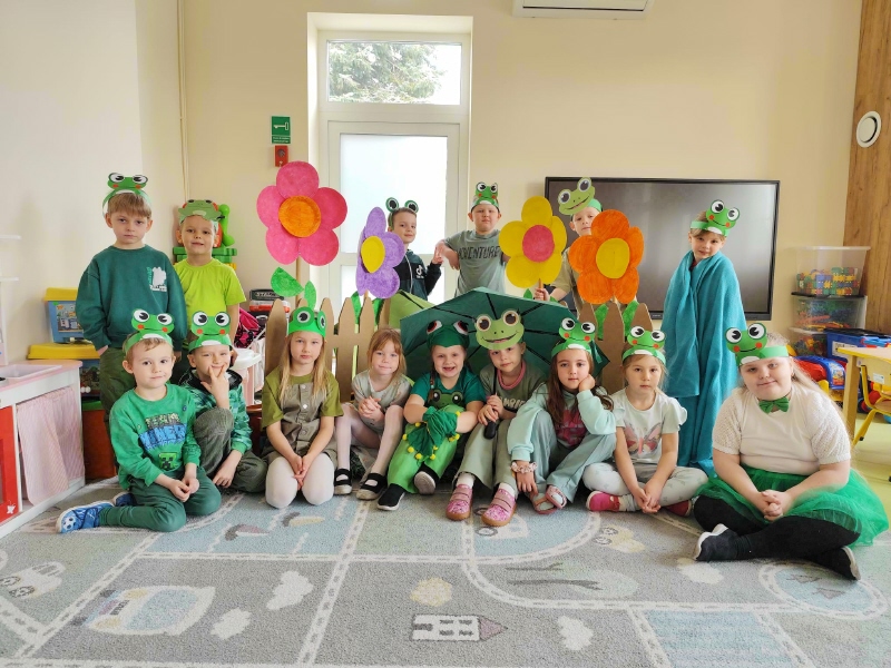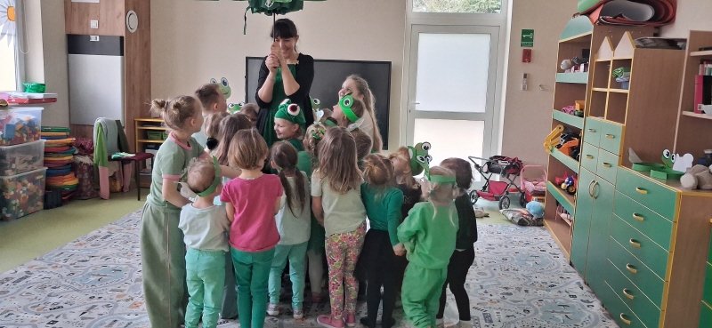Dzieci z wielkim entuzjazmem odkrywały fascynujący świat tych niezwykłych płazów. Nie zabrakło ruchowych zabaw, żabich podskoków, kreatywnych prac plastycznych i mnóstwa radosnego śmiechu. Przedszkolaki dowiedziały się, gdzie żyją żaby, czym się żywią oraz jak ważną rolę odgrywają w przyrodzie.