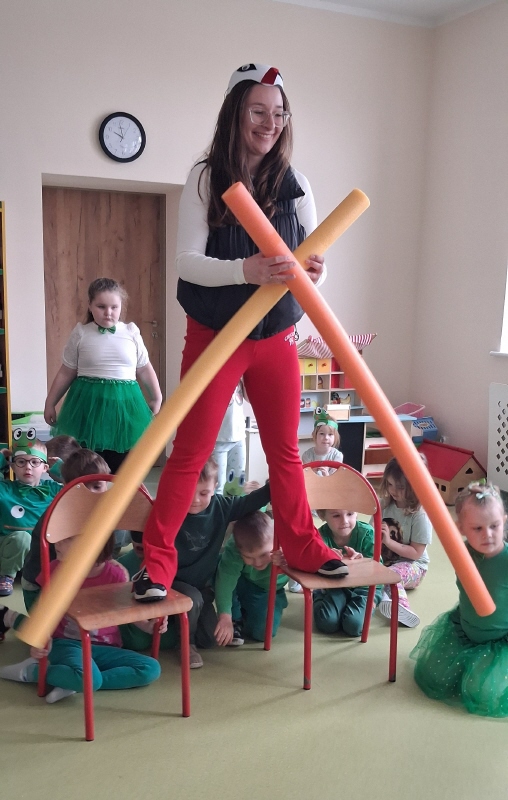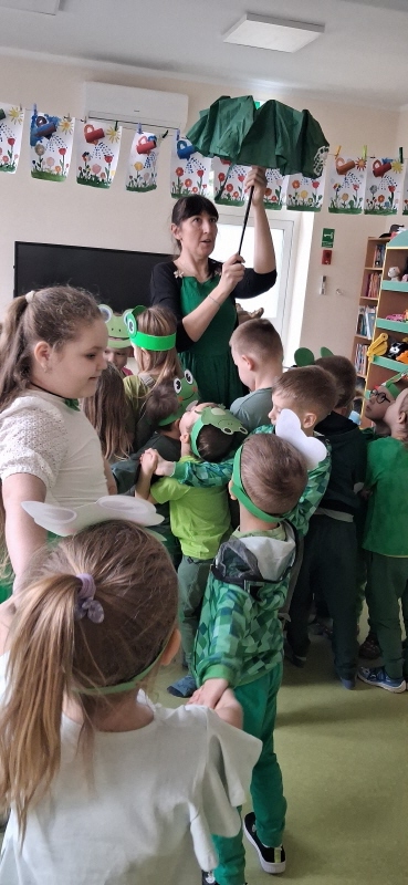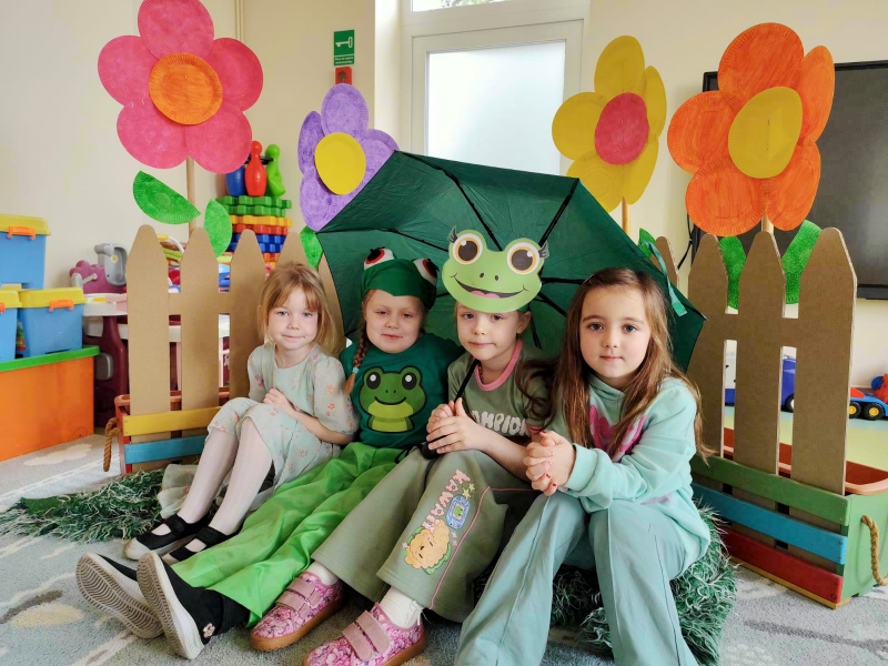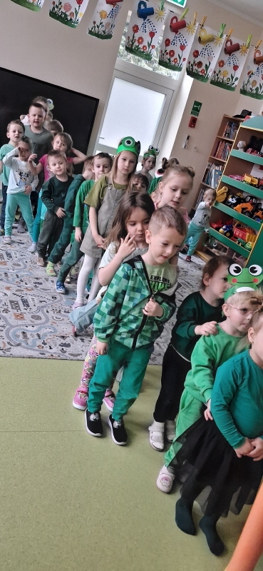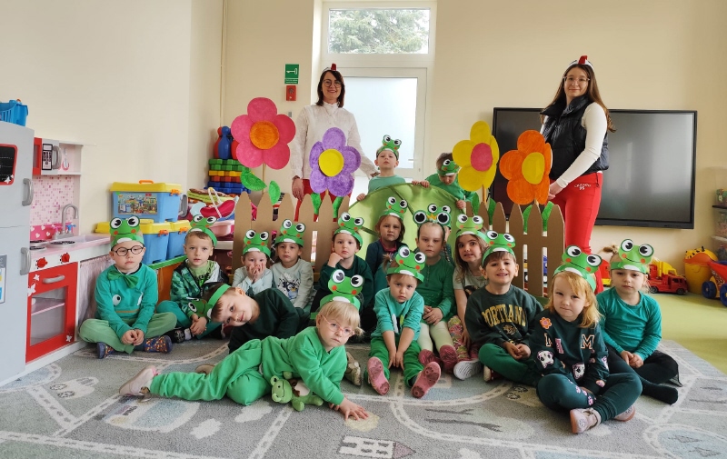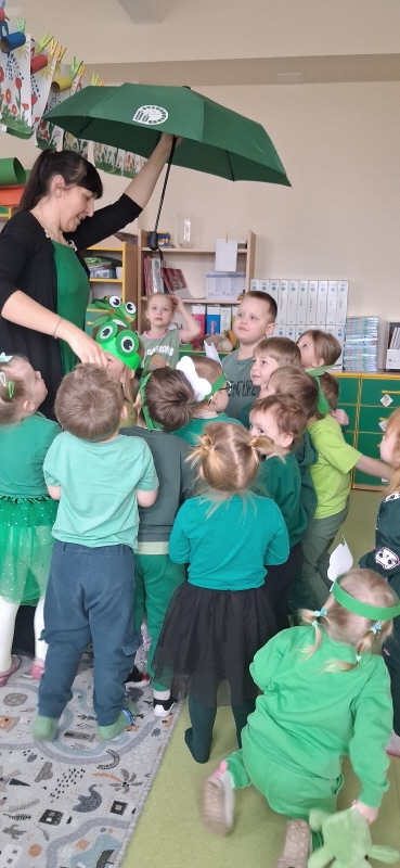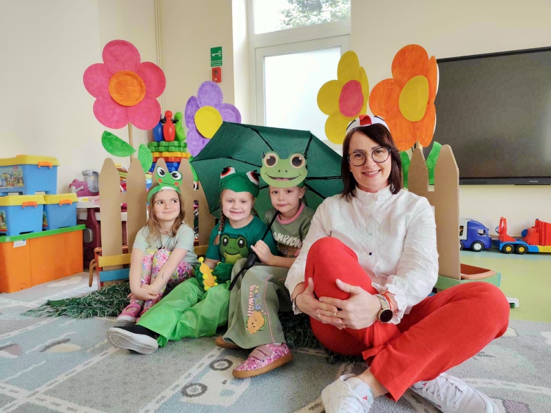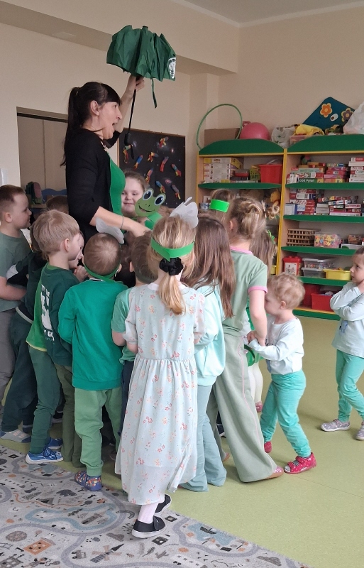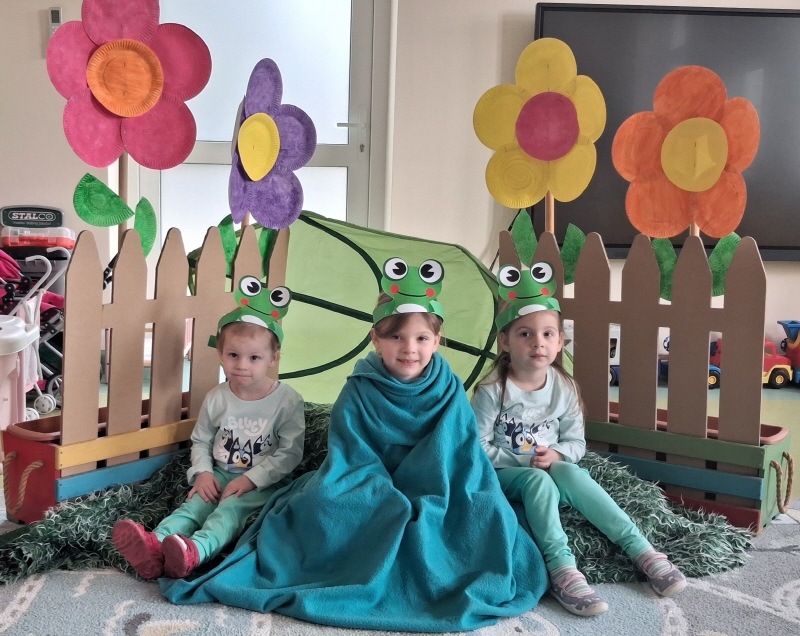 Dzieci z wielkim entuzjazmem odkrywały fascynujący świat tych niezwykłych płazów. Nie zabrakło ruchowych zabaw, żabich podskoków, kreatywnych prac plastycznych i mnóstwa radosnego śmiechu. Przedszkolaki dowiedziały się, gdzie żyją żaby, czym się żywią oraz jak ważną rolę odgrywają w przyrodzie.