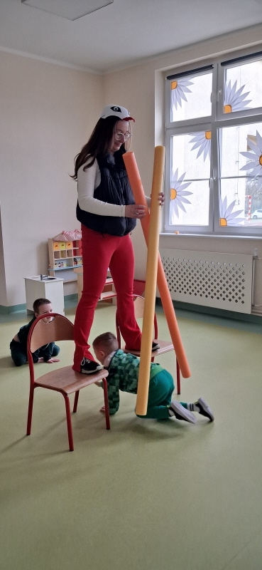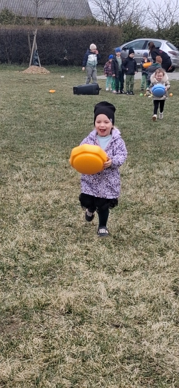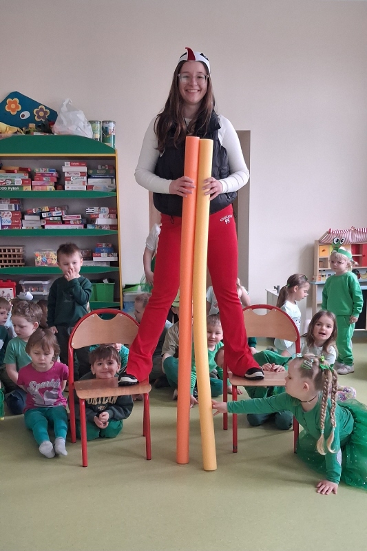 Dużą atrakcją było także krótkie przedstawienie – odwiedziły nas dwa bociany! 🪹 Początkowo zapowiadało się groźnie dla żabek, jednak szybko okazało się, że wcale nie znajdują się one w menu bociana. Zamiast pościgu była świetna zabawa i dużo śmiechu 😄.