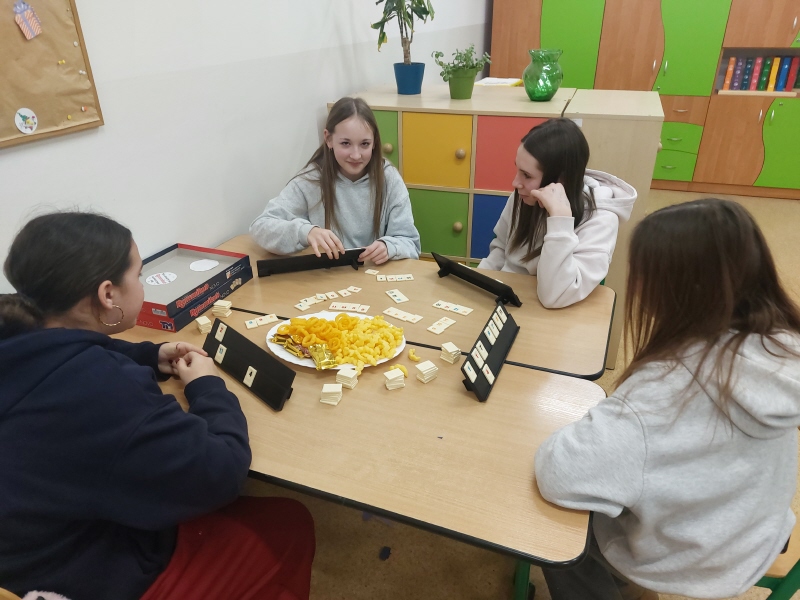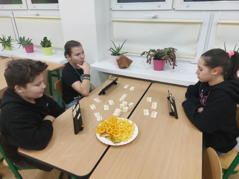 3 lutego uczniowie ze Szkoły Podstawowej w Kunowie i Szkoły Podstawowej w Daleszynie spotkali się na kolejnych rozgrywkach w Rummikuba. Spotkanie rozpoczęło się od pracy nad makietą miasta, na której już wcześniej pojawiły się ulice, rynek, park i parkingi. Tym razem uczniowie skupili się na dodaniu budynków. Pracując ze słownikami, nazywali budynki po angielsku, a następnie sklejali ich bryły z siatek. Powstały wieżowce, opera i ratusz. Po zakończeniu prac nad makietą uczniowie przystąpili do rozgrywek w Rummikuba, które z każdą partią stawały się coraz szybsze. Dziękujemy za wspólnie spędzony czas.