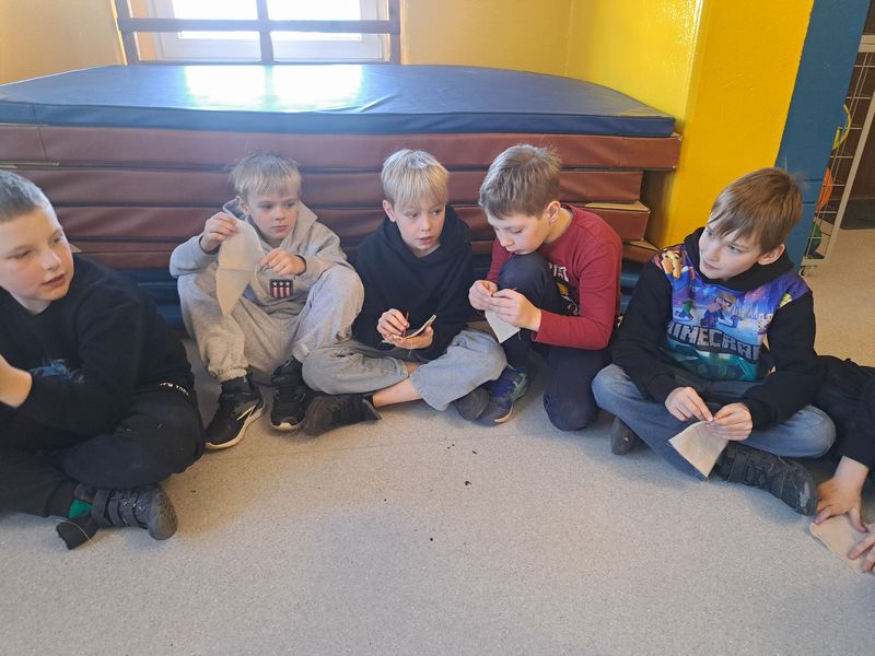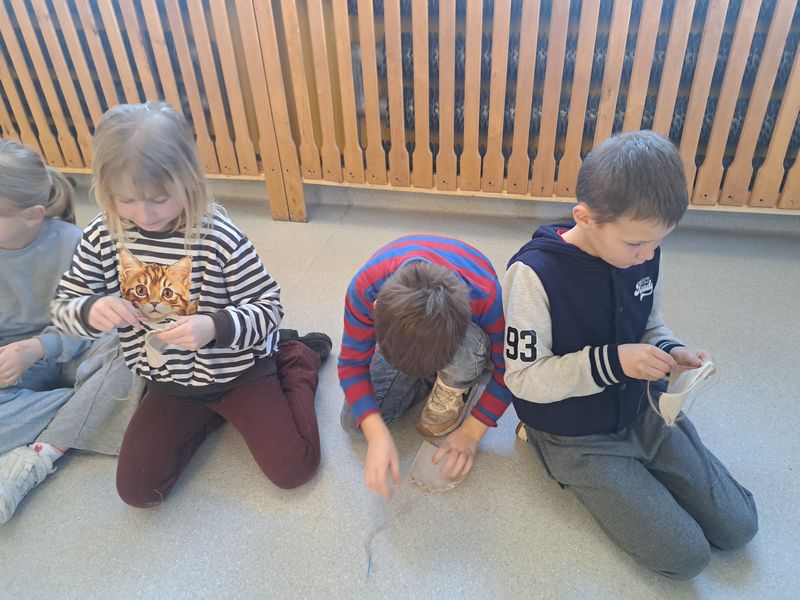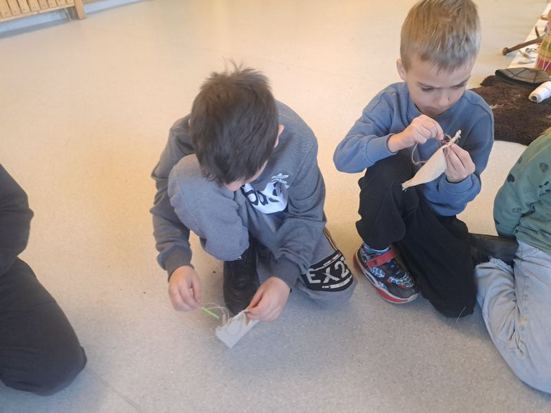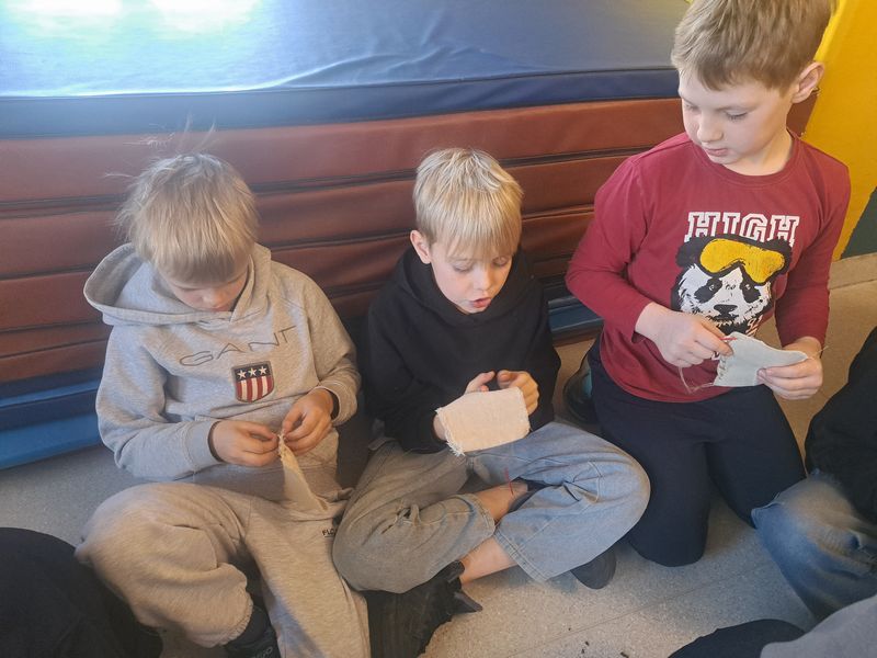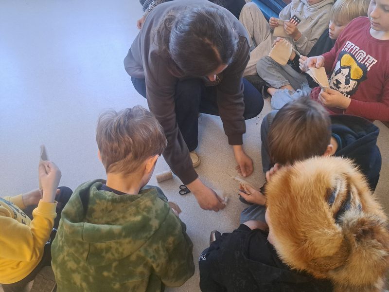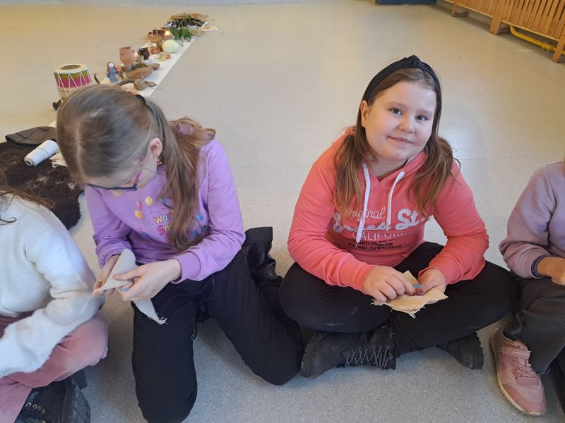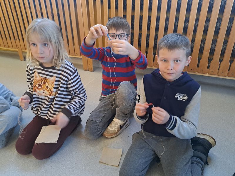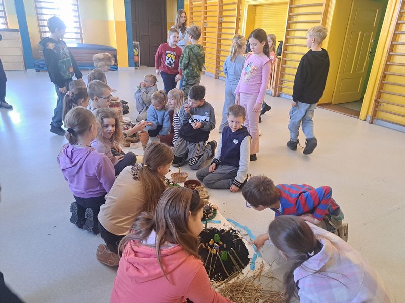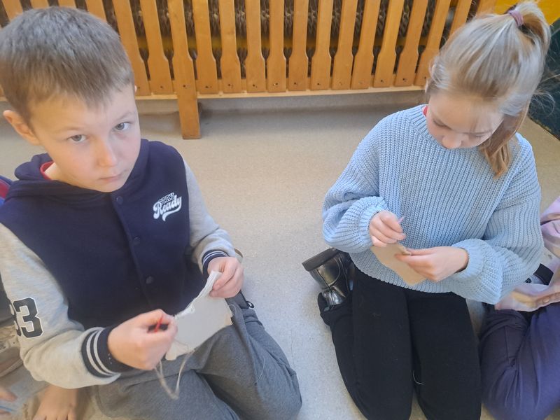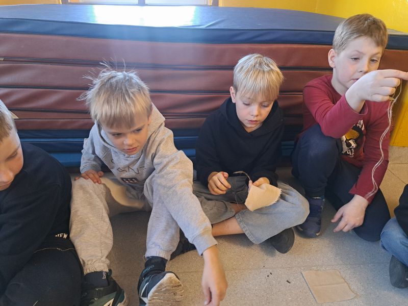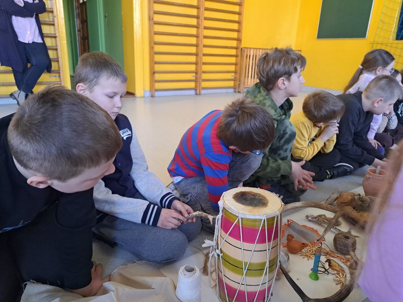Na zakończenie zajęć najmłodsi lepili z gliny, a uczniowie klas 1–3 uszyli własne lniane woreczki – sakiewki. Było to ciekawe i bardzo angażujące spotkanie, które pozwoliło dzieciom choć na chwilę poczuć klimat dawnych czasów.