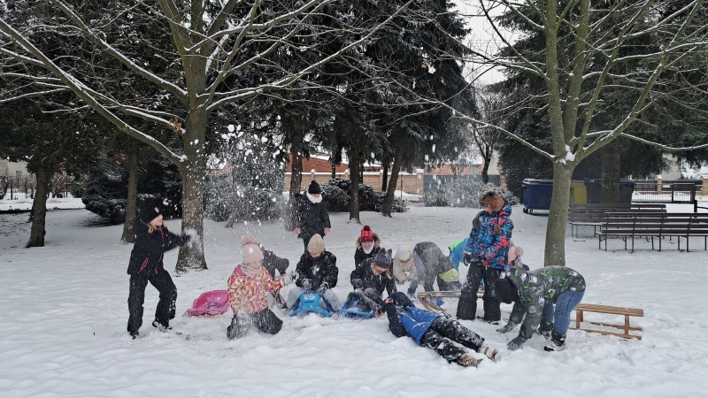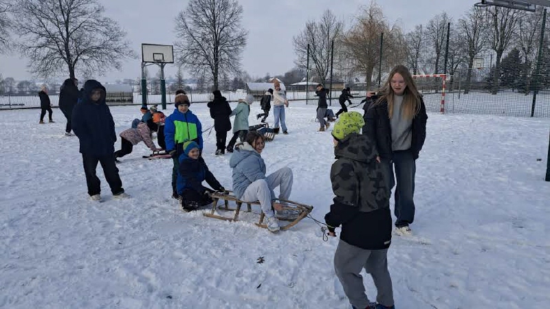 13 stycznia szkolne boisko zamieniło się w prawdziwą krainę śniegu! Piękna aura sprzyjała śnieżnym harcom. Było wszystko, co w zimie najlepsze: