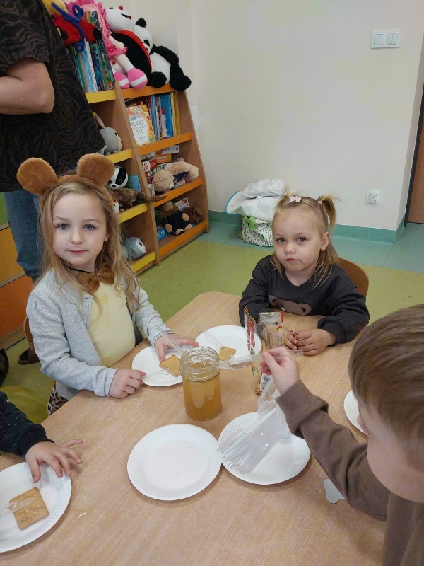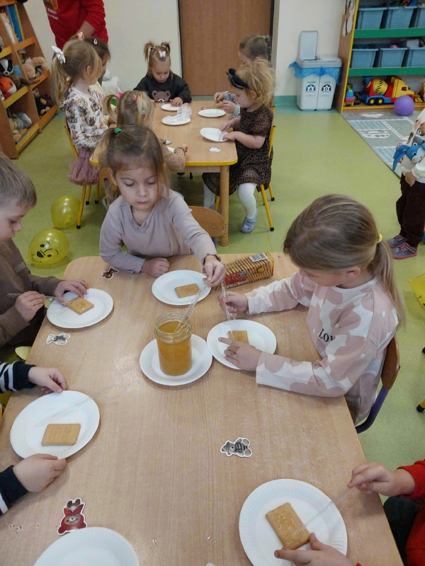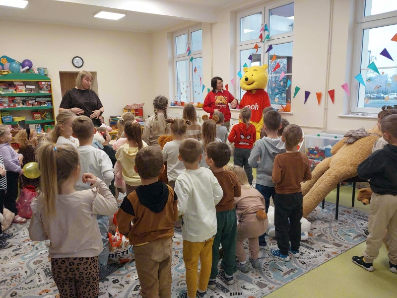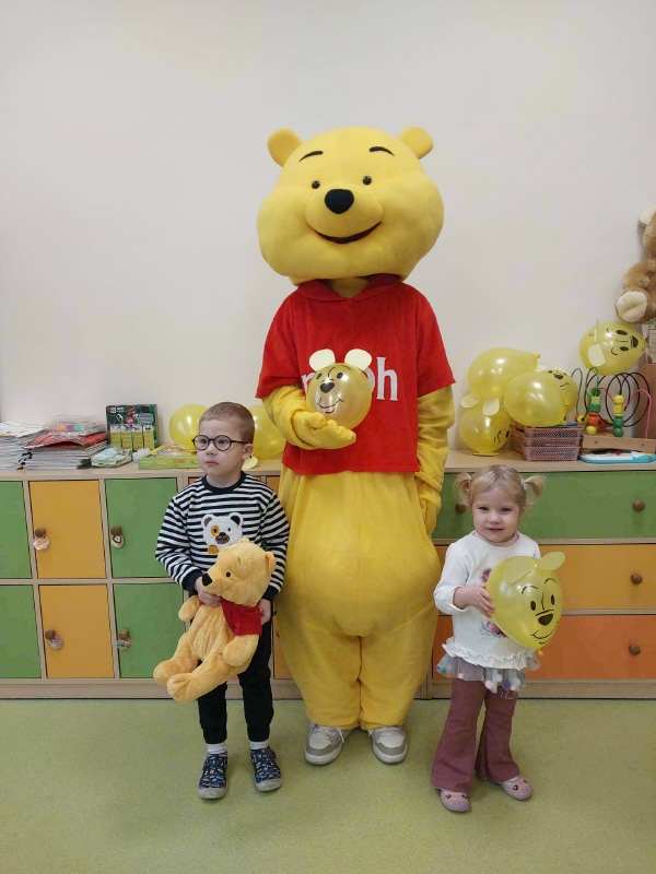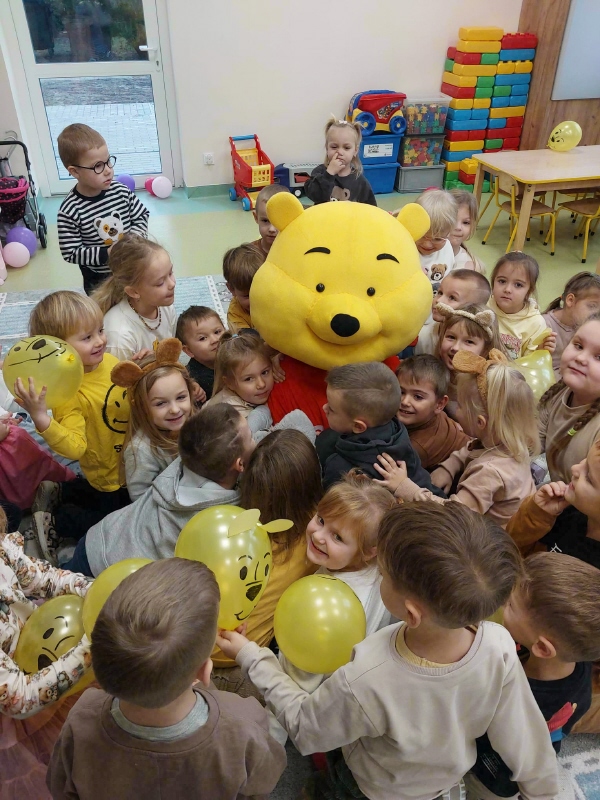 Już od samego rana w przedszkolu panowało wielkie poruszenie. Przedszkolaki nie mogły doczekać się spotkania z misiem, którego znają z bajek i książek. Kiedy Kubuś Puchatek pojawił się w sali, powitały go radosne okrzyki i gromkie brawa. Miś przywitał dzieci swoim ciepłym „Dzień dobry!”, a następnie zaprosił je do wspólnej zabawy.