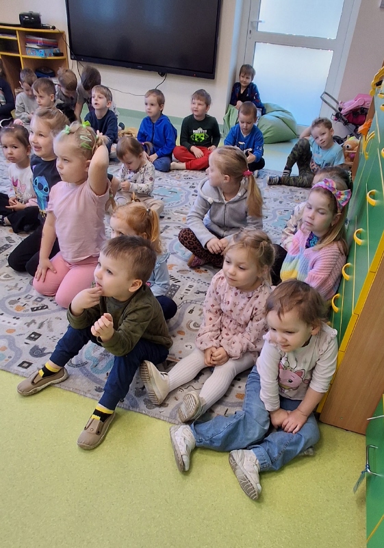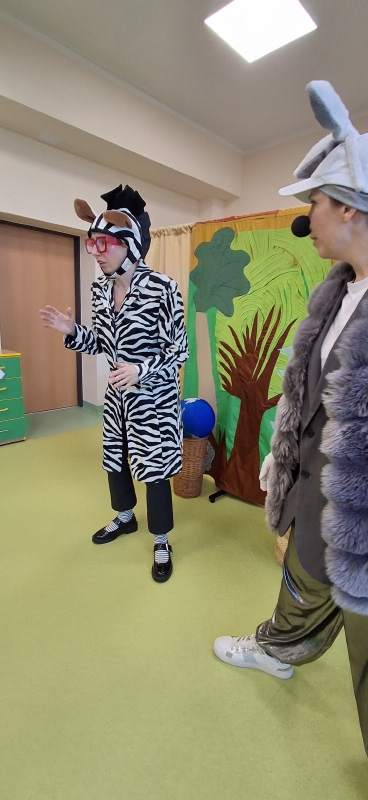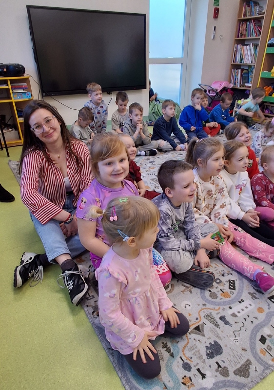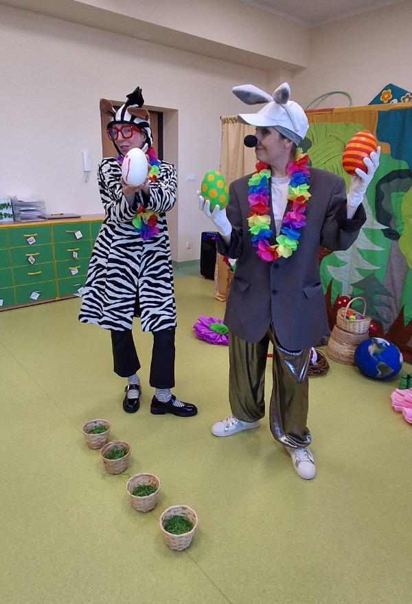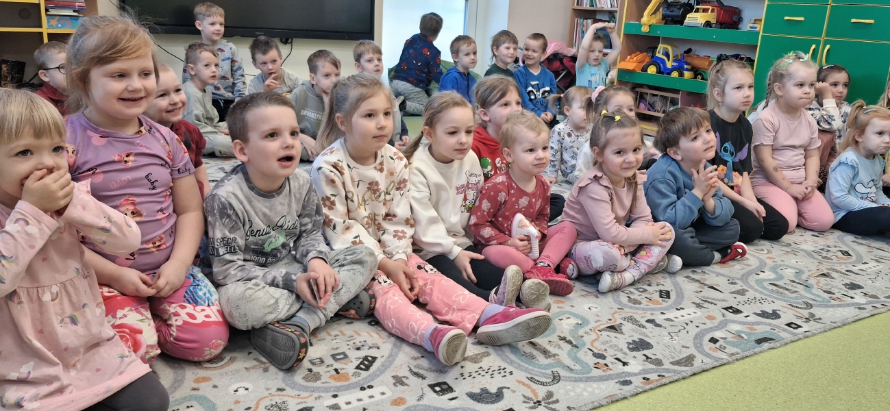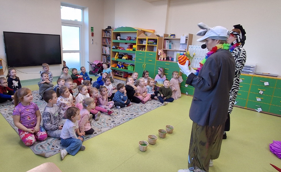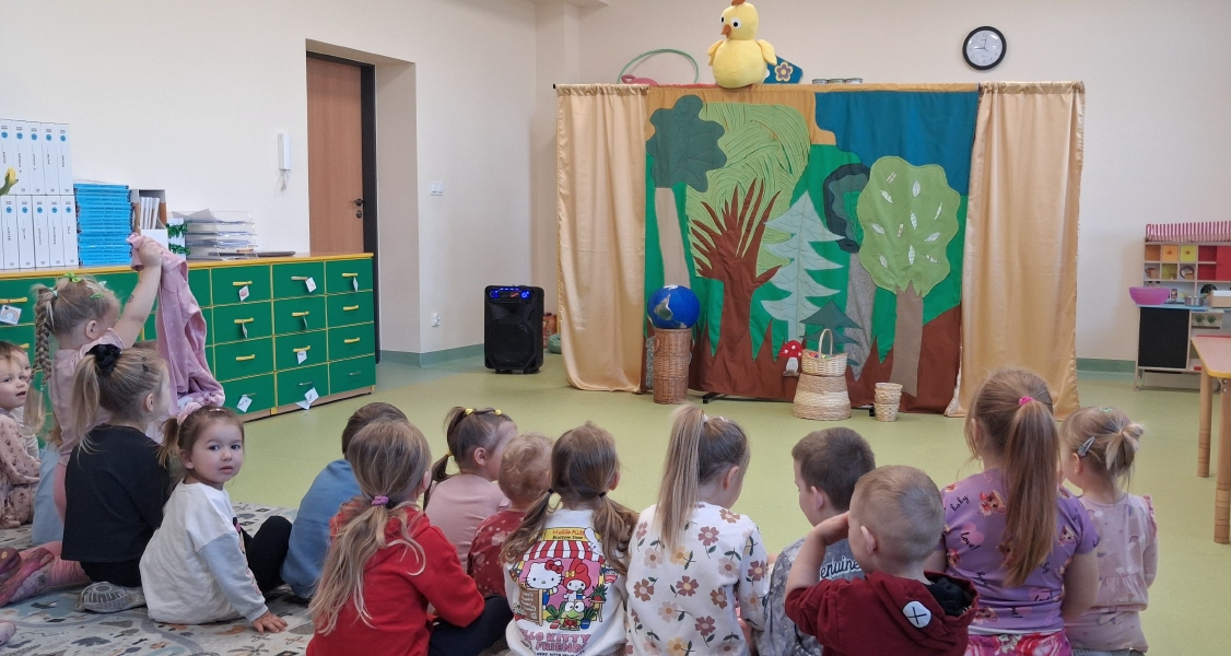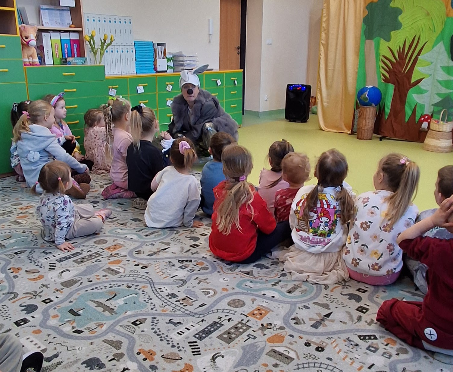 W oddziałach przedszkolnych naszej szkoły odbyło się wyjątkowe wydarzenie – dzieci miały okazję obejrzeć teatrzyk Pompon pt. „Zając w paski”. Spektakl został zaprezentowany w ramach projektu Gostyńska Kuźnia Talentów. Przedstawienie wzbudziło wśród najmłodszych ogromne zainteresowanie i wywołało wiele radości. Kolorowa scenografia, ciekawe postacie oraz pełna humoru historia sprawiły, że dzieci z dużym zaangażowaniem śledziły losy bohaterów. Była to nie tylko świetna zabawa, ale także okazja do rozwijania wyobraźni i wrażliwości na sztukę teatralną. Udział w spektaklu był również elementem rozwijania inteligencji interpersonalnej – dzieci uczyły się rozumienia emocji bohaterów, współodczuwania, budowania relacji oraz właściwego reagowania w różnych sytuacjach społecznych.